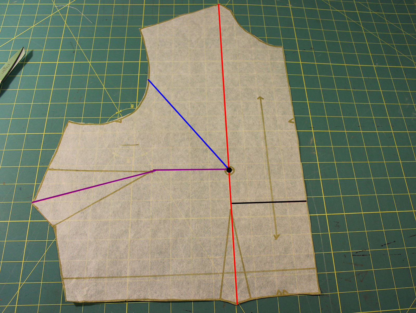 Slash across the pattern from waist to shoulder along waist dart foldline.. All you know is that the bust dart point is supposed to point to the apex. Slash across the pattern from waist to shoulder along waist dart foldline.